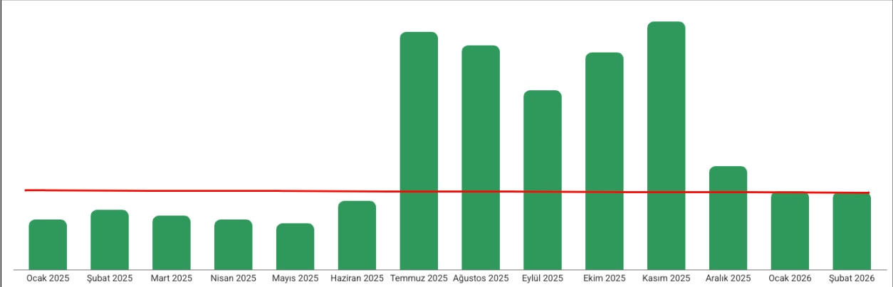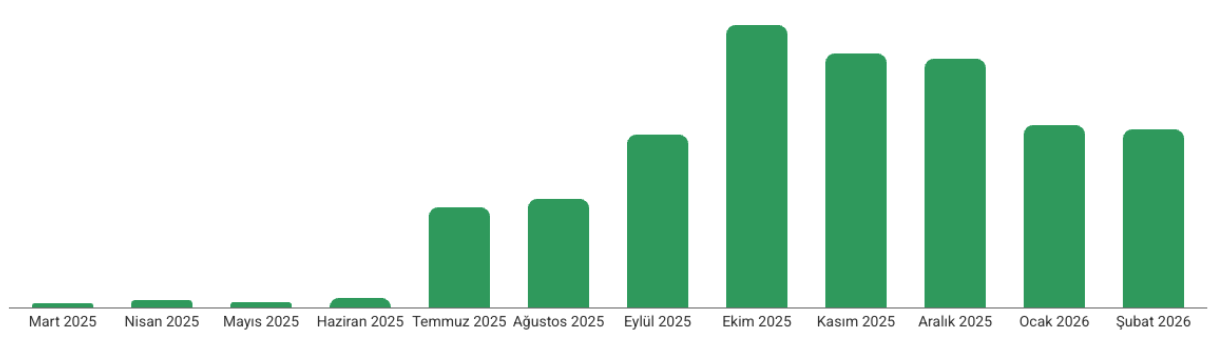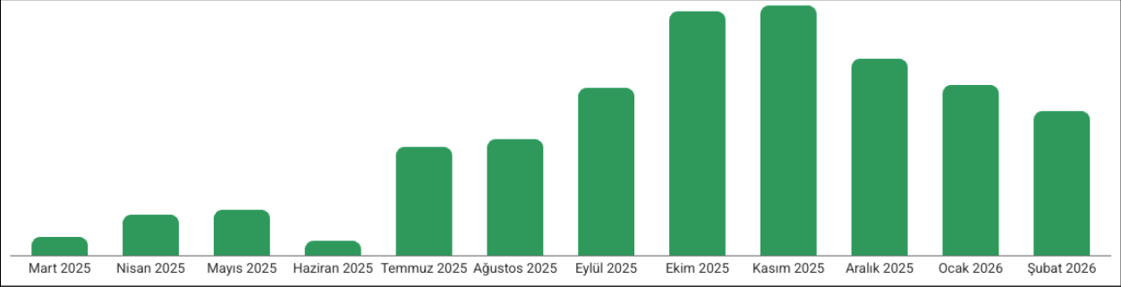 2025 yılı verileri incelendiğinde, SEO çalışmalarının Haziran ayında başlamasıyla organik trafikte belirgin bir büyüme yaşanmıştır. Kasım ayı, proje başlangıç ayı olan Haziran ayına kıyasla %251 oranında bir artış göstermiştir. Devam eden aylarda sezonsallık düşüşü yaşansada, önceki senenin üzerinde veriler elde edilmiştir.