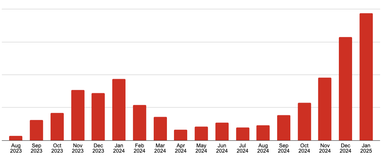 2023 yılının ilgili ayları ile 2024 yılının aynı döneminde %75.51 oranında bir büyüme elde edilmiştir. Yapılan çalışmalar ile birlikte kullanıcıların site içerisinde vakit geçirilmesi ve sayfalar arası gezinmesi artırılmıştır.