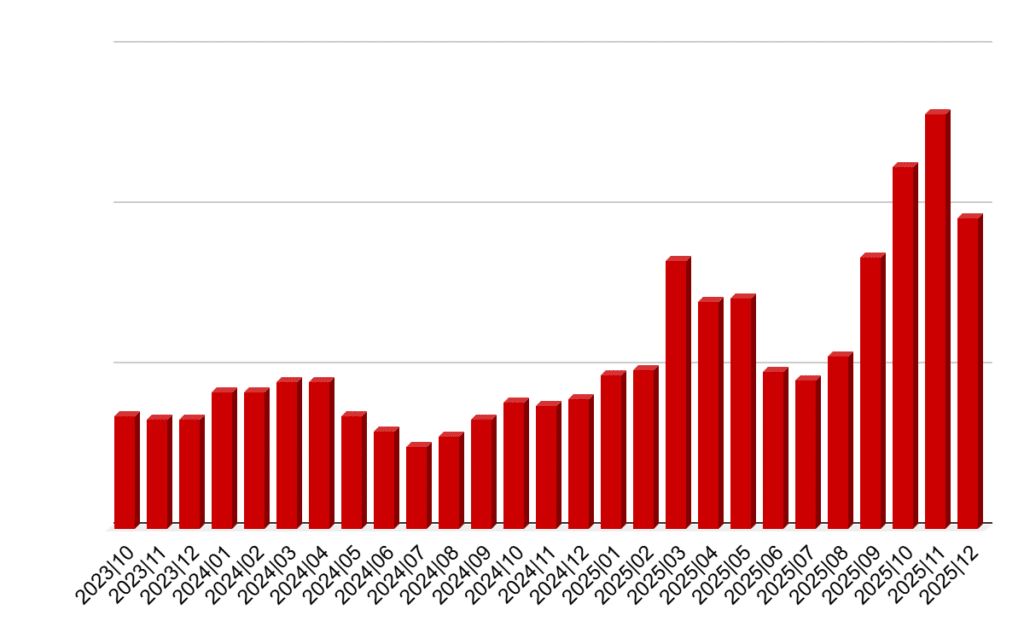 2025 Q4 verilerini 2024 yılının Q4 verileri ile search console üzerinden non-brand clicks olarak karşılaştırdığımızda %183.61 oranında bir büyüme elde edilmiştir.