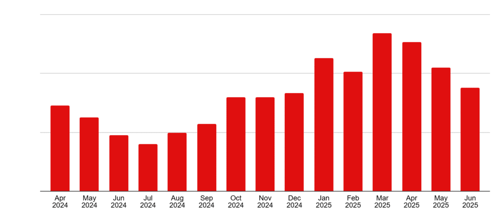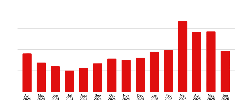 2024 Q2 verilerini 2025 yılının Q2 verileri ile search console üzerinden overall clicks olarak karşılaştırdığımızda %74.70 oranında bir büyüme elde edilmiştir.