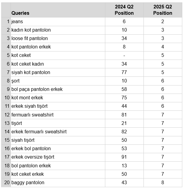 “baggy pantolon” kelimesinde yaşanan sıralama iyileşmesi ile tıklama sayılarında %6933’lük artış yaşanmıştır.