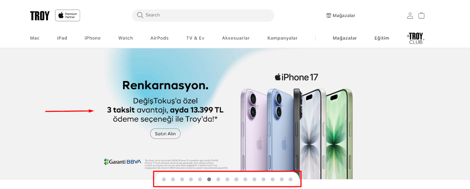 Durum: troyestore.com’da , /apple-degis-tokus sayfaları, Product Detail (Ürün Detay) sayfaları ve Cart (Sepet) sayfaları üzerinden kullanıcılara model bazlı DeğişTokuş kampanyaları sunuluyor (ör. Mac → Mac değiştokuş, AirPods → AirPods değiştokuş).