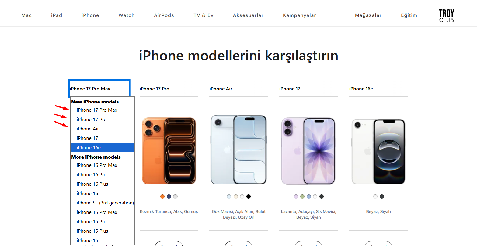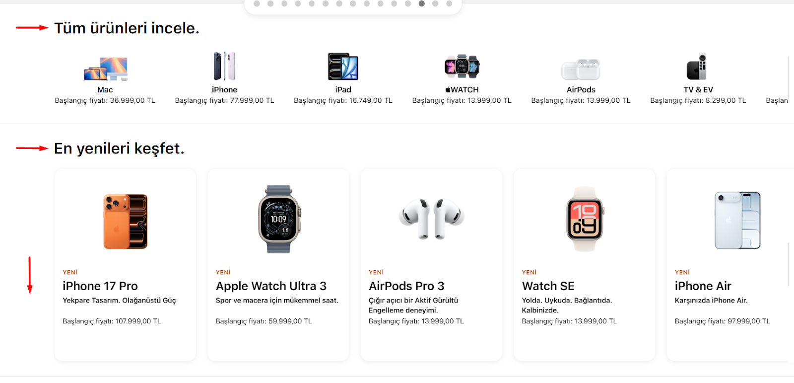 Durum: troyestore.com‘da yer alan Apple ürünleri karşılaştırma sayfalarında kullanıcı etkileşimlerine yönelik herhangi bir ölçümleme veya event takibi bulunmuyordu.