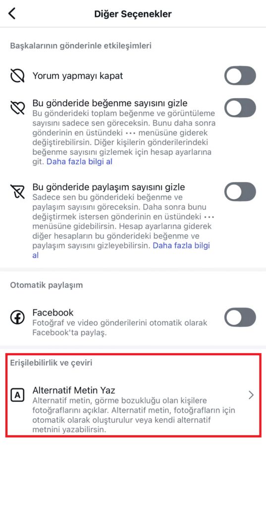 • Gönderi yüklerken manuel alt metin girilmelidir. (otomatik yerine açıklayıcı & anahtar kelimeli).
